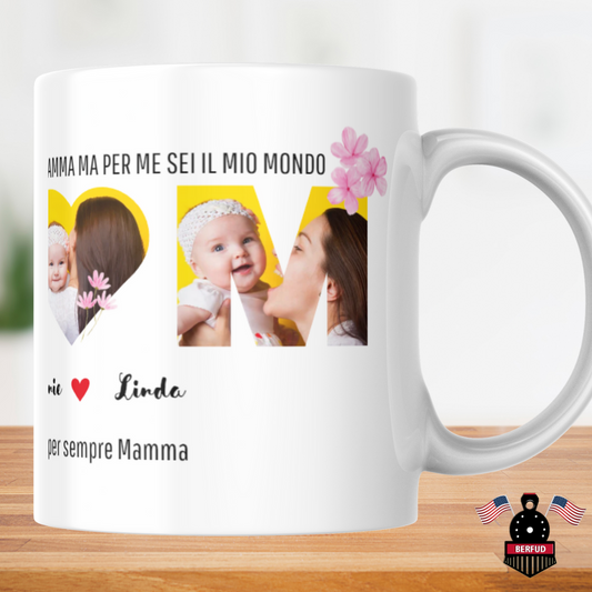 Taza personalizzata Festa della Mamma MOM e 4 foto