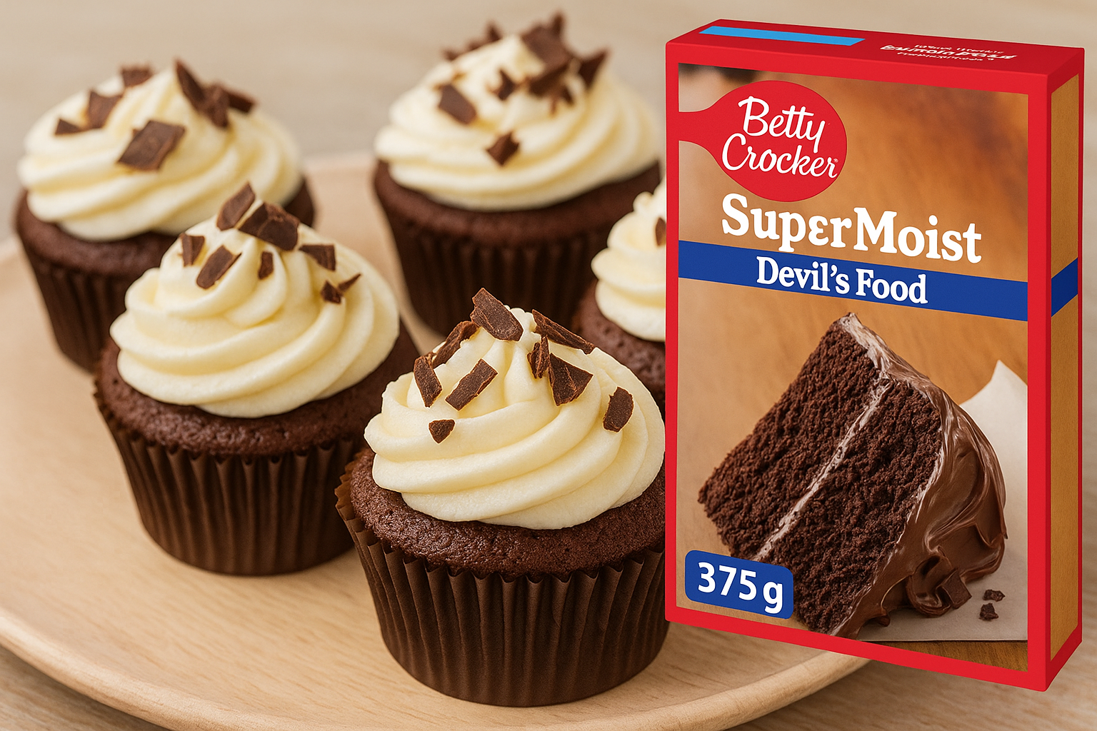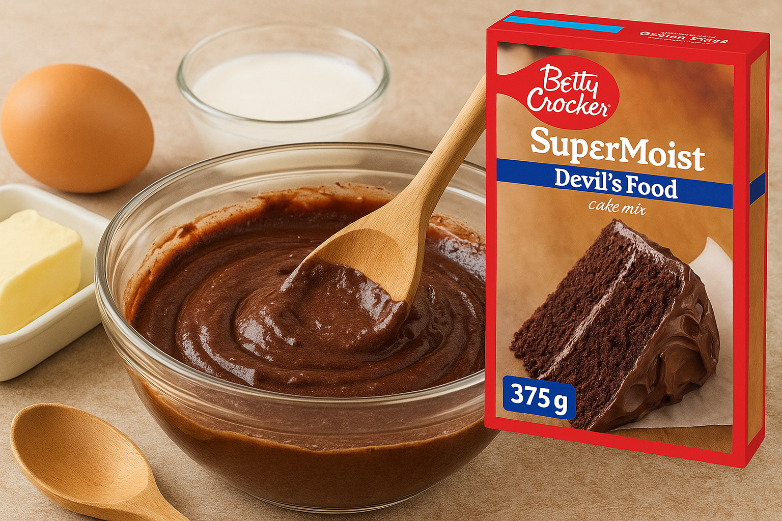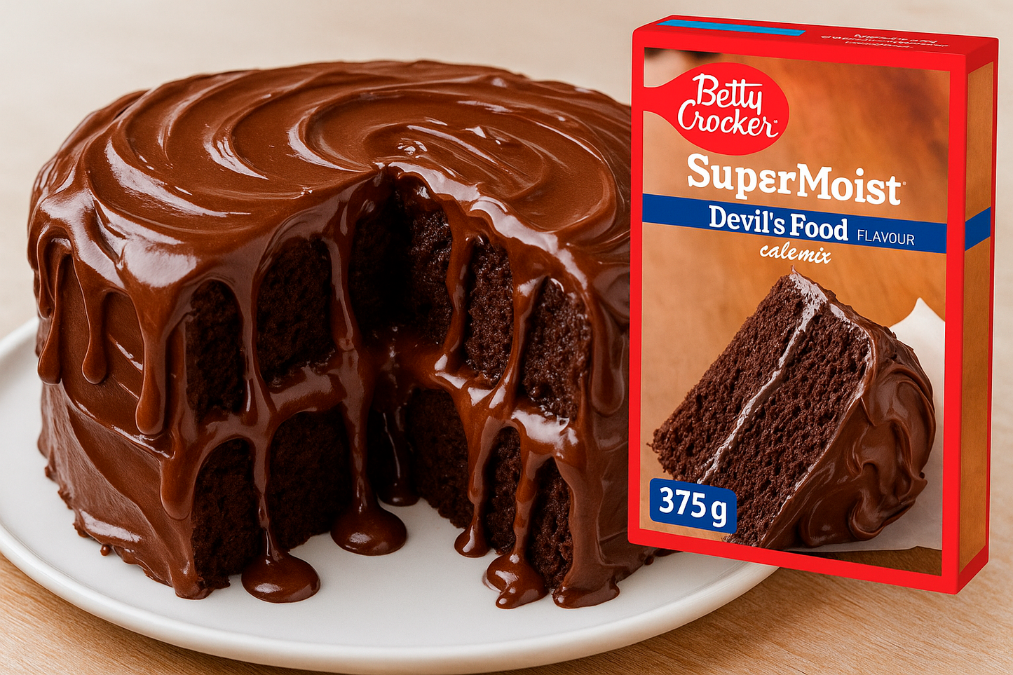 Nato dalla tradizione pasticcera degli Stati Uniti, il Devil’s Food è celebre per il suo sapore profondo di cacao e la consistenza soffice, quasi cremosa, grazie alla speciale formula Super Moist firmata Betty Crocker. È l’opposto del classico Angel Food Cake: più intenso, più cioccolatoso, più godurioso.